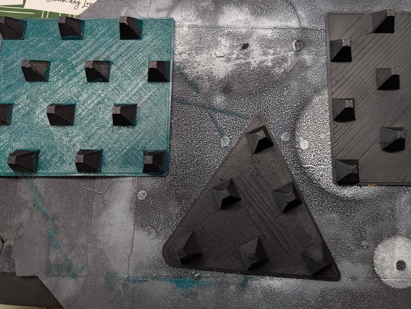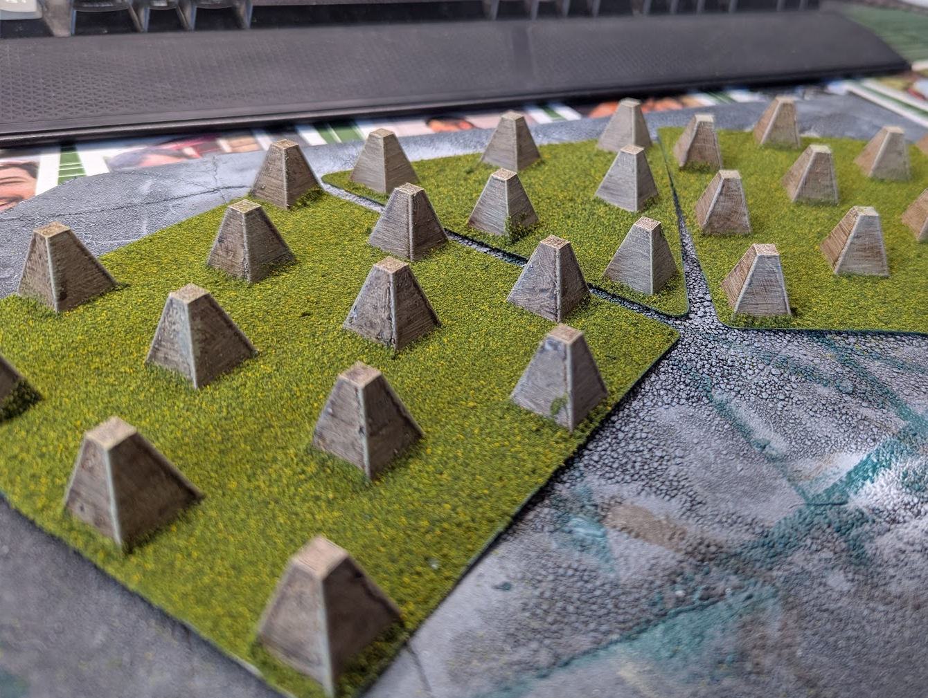 They are a very basic design of Dragons Teeth tiles that come in square or triangular and fit nicely together to form defensive lines across the board. I could only find 3 in the tidy up though I’m almost certain I made enough to zig zag across the 4′ width of a 6′ by 4′ gaming board.