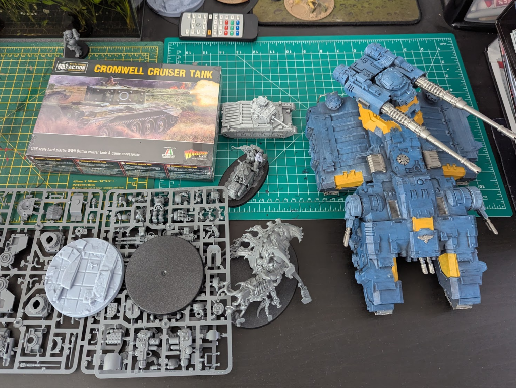 Back to the 40k magazine run, across its 90 issues it comes with a lot, and I foolishly upped my subscription to the premium kind that comes with some special characters models in the form (so far) of the power sword wielding primaris company champion and the ultramarine chief librarian Tigurius as will as a run of bigger units in walkers, tanks and daemons shown above.