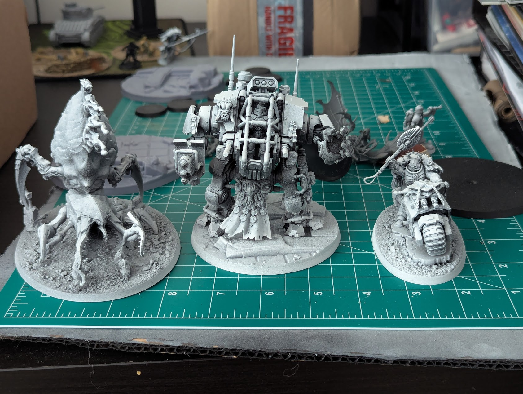 The super heavy tank didn’t get moved and continues to gather dust on the shelf of shame unfortunately. The Psychophage did get built fully, based and primed but only really as part of a wider batch of doing bits so I can’t really claim any specific progress on that!