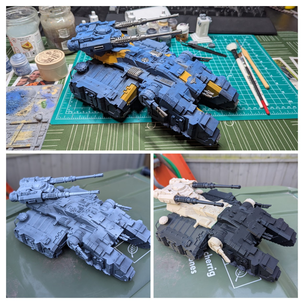 One of the pitfalls (and there are many) of having access to 3D printers and the internet of files is that £300+ giant resin Games Workshop models become within reach at a smaller price for similar proxies. The GW resin version is designed as part of the new generation of floating tanks with what I personally can’t un-see as many landing gears along the base of the models. These are used as the ‘repulsor’ technology in lore, this proxy has been remixed to include classic Rhino style tracks instead which I personally prefer and comes with the added benefit of being significantly more stable on the table than a flight stand!