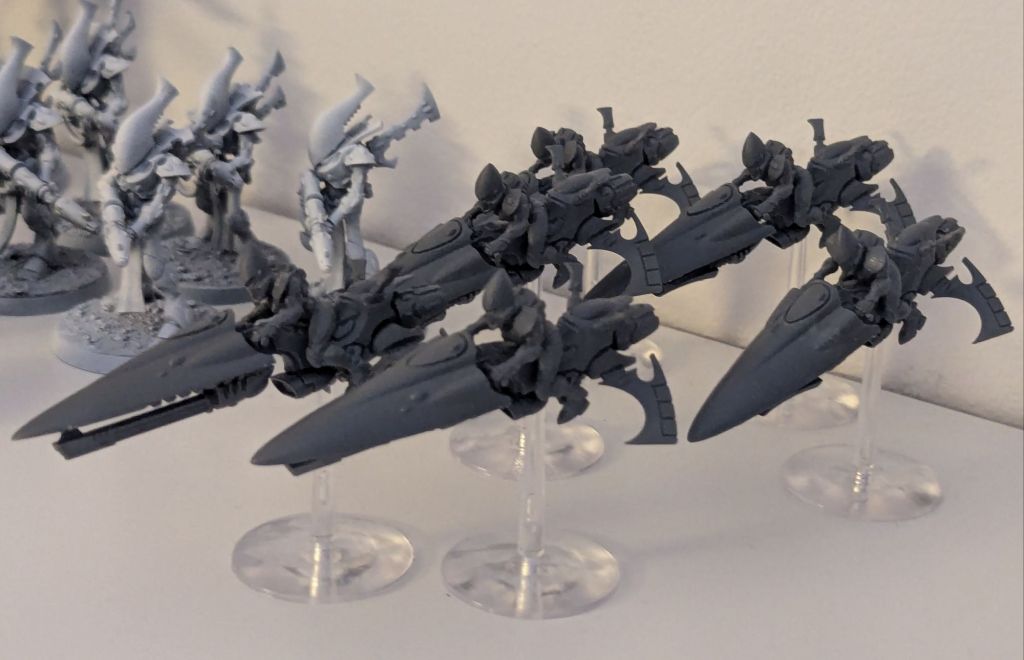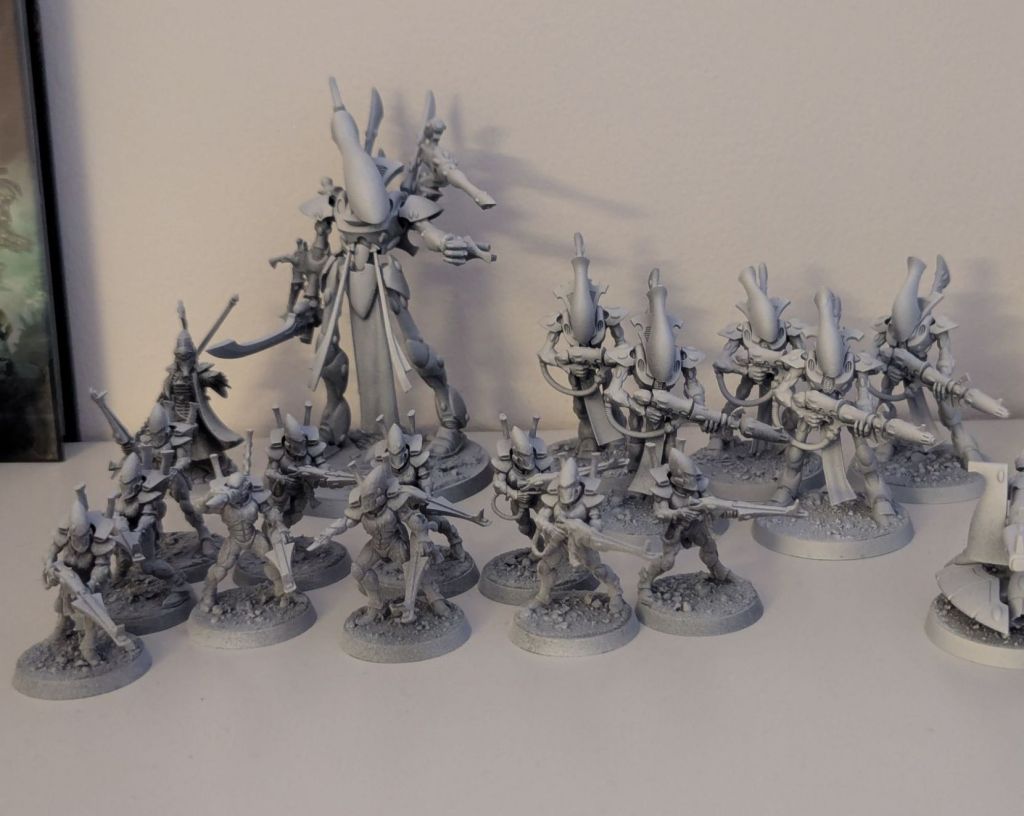 As eluded to in my previous post I have been making my way through the Aeldari combat patrol. I now have all the standard patrol built plus the optional Wraithguard which are a magazine optional swap out. The Wraithlord certainly meets the ‘vehicle’ definition if nothing else due to its size and comparison to the warsuit or dreadnought, more in question are the Wraithguard which are also artificial robotic constructs with the soul of an elite Aeldari warrior, but slightly smaller in stature as well as the windriders.