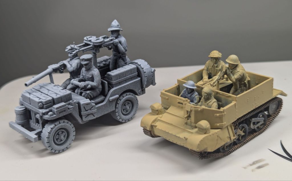 So almost against the better guidance of the challenge (in my defence the files had been sliced and already on the printer USB) I printed two more vehicles in the form of a Bren Carrier and a SAS Jeep to add my growing Desert Rats collection (I should do a post on that…)